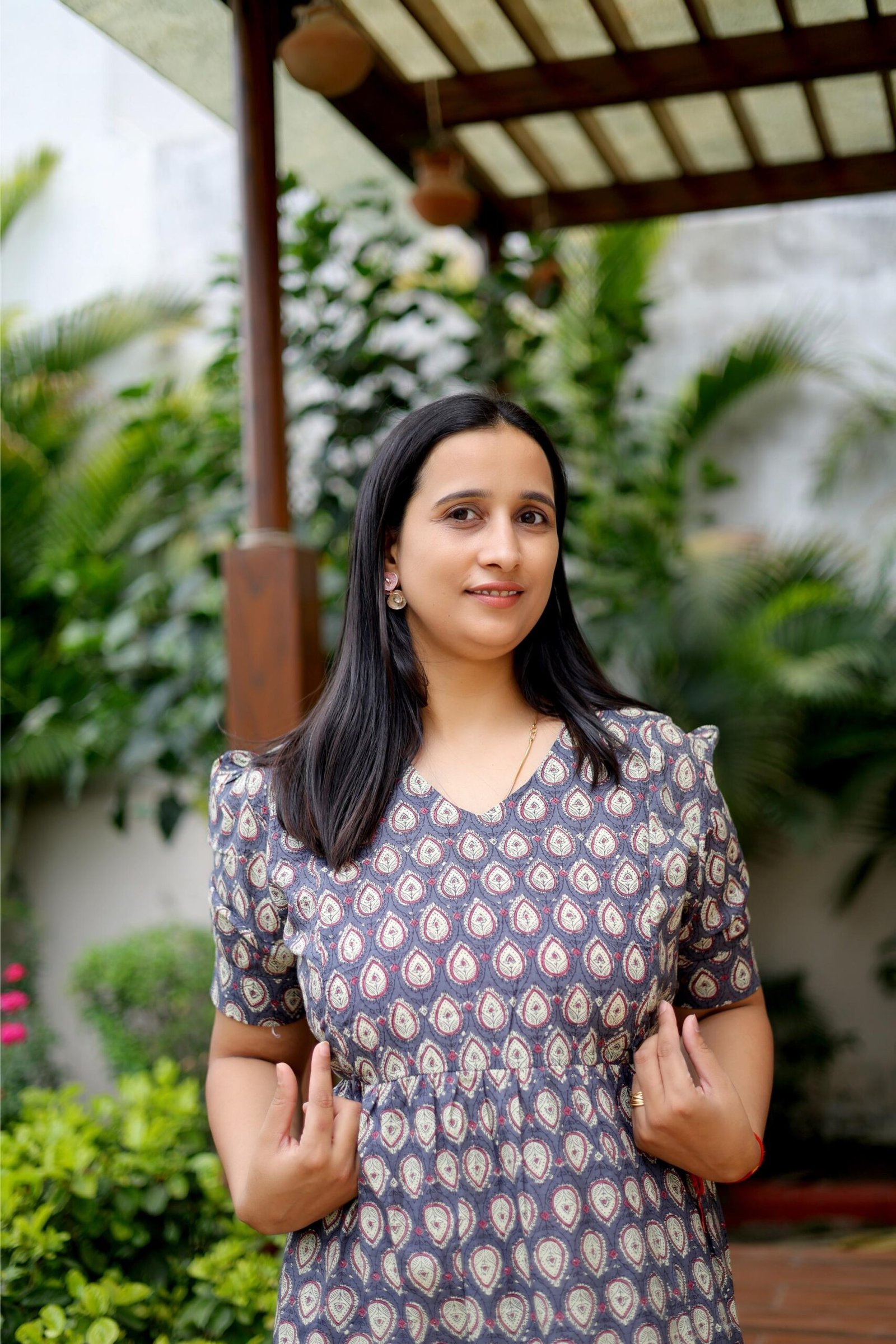 Step into effortless maternity style with this beautifully crafted grey in paisley print nursing dress, adorned with an all-over beige and maroon peacock print.